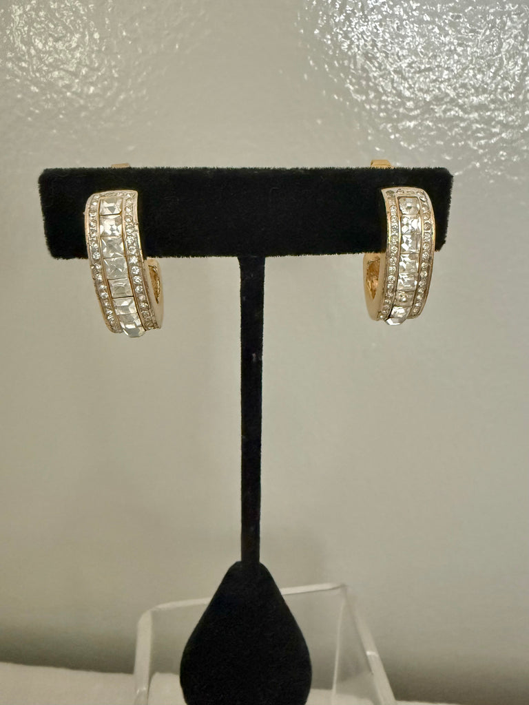 Trifari Channel Cut Rhinestone Hoop Clip On Earrings